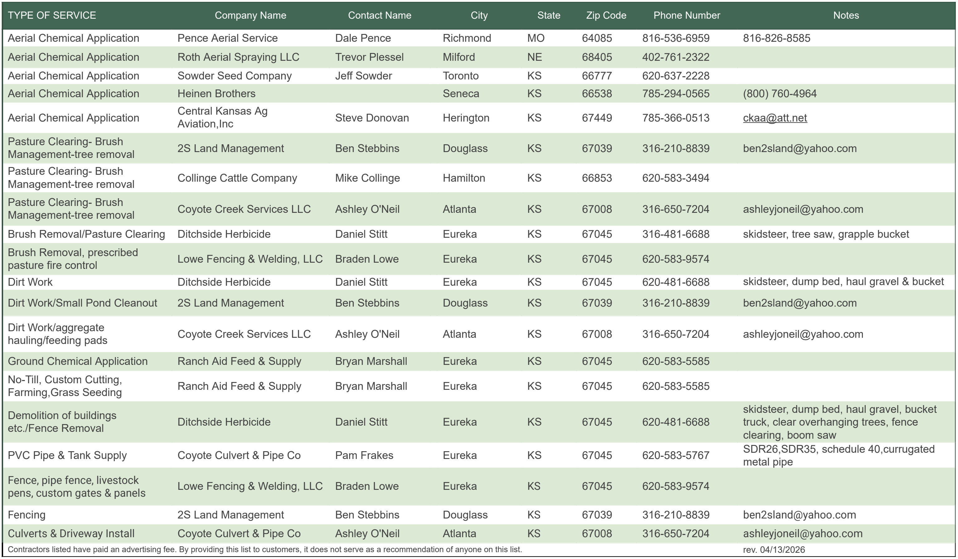 Those interested in receiving assistance are encouraged to contact the District office to apply. For additional information call 620-583-5544 ext.3 or visit the USDA office located at 1819 E River St, in Eureka, Monday through Friday from 8 a.m. to 4:30 p.m.